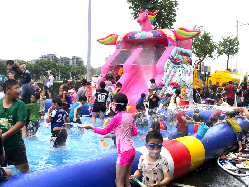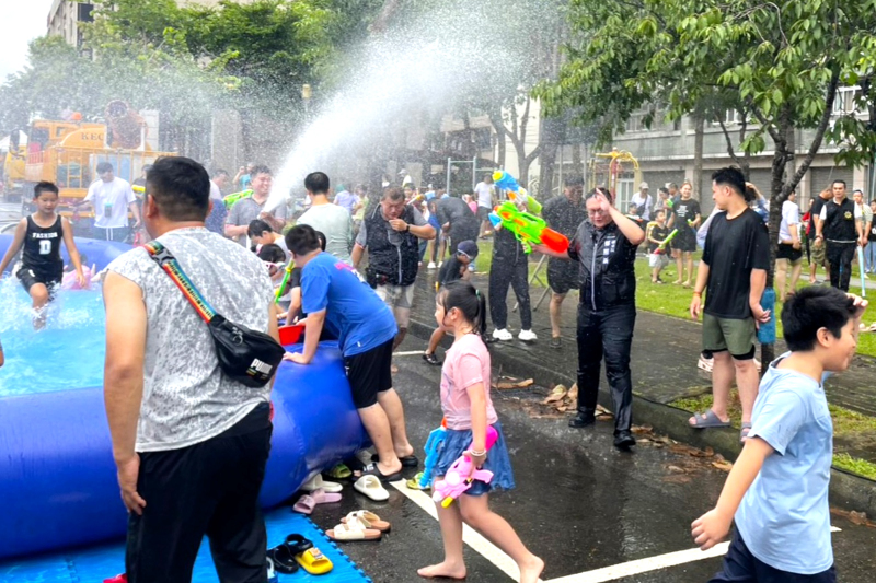 台中市太平區公所及中山里辦公處今(10)日在環太東路福德公園旁共同舉辦太平潑水節活動,吸引眾多親子到場嬉戲狂歡,沁涼水柱從四面八方襲來,讓眾人直呼過癮。副市長鄭照新代表市長盧秀燕出席與民眾同樂並表示,太平潑水節已邁入第15屆,除慰勞父親終年辛勞,並傳達對新住民的重視與關懷,每年參加人數不斷攀升,已成為當地的重要慶典,感謝太平公所及中山里長閻泰利齊力推廣,促進多元文化融合。