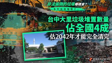 據菱傳媒記者王乙徹調查報導,台中市有一座,連行政院環境部都不知情的超量垃圾山-大里區衛生掩埋場;《菱傳媒》調查發現,該處堆置量34萬噸全國第一、未來8年還要堆48.8萬噸、2042年才完全清除;離譜的是,該處剩餘容量2024年早已歸零,卻持續不斷超量堆置廢棄物。由於文山焚化廠改建延宕,台中垃圾無處可去,只能任由情況持續惡化,未來8年將陷入垃圾燒不完、堆不盡的窘境,成為中部最大環境未爆彈。台中垃圾8年內無解,連中央都被媽媽市長蒙在鼓裡。