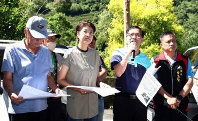 隨後,許縣長轉往信義鄉同富社區活動中心,依序向陳情鄉親簡報並簽核了神木村第6鄰聯外道路旁邊坡改善工程112萬5千元;神木村國軍產業農路路面改善工程94萬5千元;同富村第2-3鄰巷道路面改善工程60萬4,800元;卡里布安村望美段1674地號旁灌溉用水改善工程45萬元。
