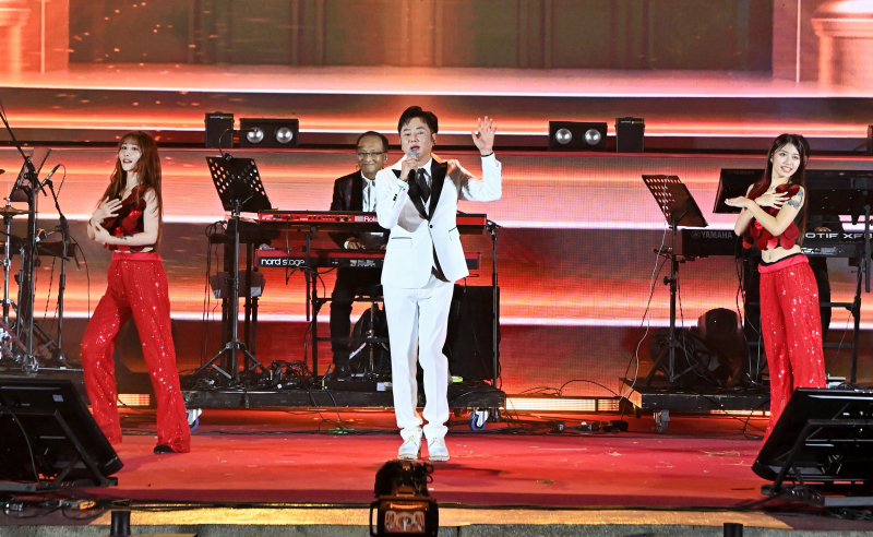 從胡瓜、陽帆到葉璦菱、白冰冰,經典旋律連番登場,萬人齊聲合唱〈感恩的心〉,現場氣氛感動又熱烈。