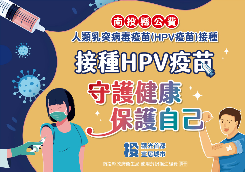 南投縣政府衛生局自2018年起推動國中女生公費接種HPV疫苗。然而,過去因HPV疫苗常被稱為「子宮頸癌疫苗」,導致社會大眾誤以為僅女性需要接種、僅能預防子宮頸癌。事實上,男性同樣面臨感染人類乳突病毒(HPV)之風險,人類乳突病毒會感染人體的表皮與黏膜組織,是常見且重要的傳染病之一。我國常見的HPV高危險型為第16、18、52、58型,與子宮頸癌前病變、子宮頸癌、人類外生器癌及頭頸癌(包括口咽癌)等疾病均有密切關聯。