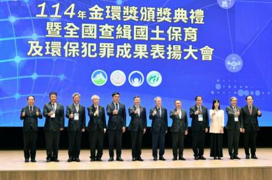 行政院長卓榮泰今(29)日出席「114年金環獎頒獎典禮暨全國查緝國土保育及環保犯罪成果表揚大會」,肯定所有獲獎同仁善用科技工具,透過橫向聯繫相互合作,積極投入國土保育及查緝環保犯罪工作,強力偵辦包括廢棄物違法傾倒、化學物質排放河川破壞水質、焚燒大型建築廢棄物、非法棄置營建產出物等非法情事,成為眾人楷模典範,這不僅仰賴一股衝勁而已,更要耐得住寂寞與危險,同時也向國人傳達一項訊息:天災或許難免,但人禍是可以預防避免,只要提高警覺,就能全心全力讓臺灣國土獲得更有效的保護。卓院長也期許所有獲獎同仁帶領更多夥伴一同投入山林保育計畫。