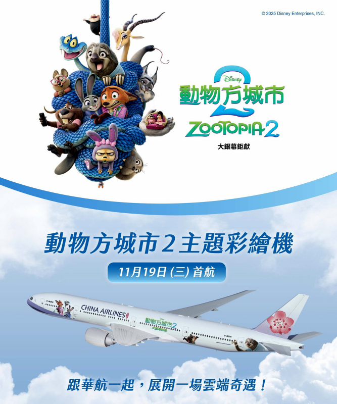 動物方城市2主題彩繪機11/19首航 跟華航一起展開一場雲端奇遇