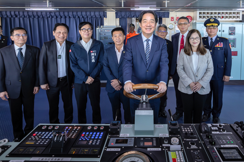 賴清德總統(1)日上午出席「嘉義級巡防艦第四艘台北艦成軍暨高緯度遠洋巡護船第一艘命名下水聯合典禮」,展現政府持續推動「國艦國造」與「國防自主」的成果。並表示,面對中共的灰色地帶侵擾,臺灣除強化自身防衛、深化與理念相近國家的海事合作外,也要強化國家數位及民生運作的韌性。期盼立法院不分黨派,支持「海纜七法」的修法,確保臺灣在通訊、能源、民生及航運的穩定運作,也一起為海洋治理與國家安全貢獻力量,共同守護民主、自由與和平。