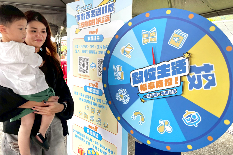 南投數位生活升級中!南投縣政府繼攜手台中市政府合作台中通通南投計畫,打造「南投生活專區」後,再度推出「數位通行銷推廣計畫」,將「台中通APP」導入南投,以有感互動帶動縣民體驗智慧生活。 11月起,縣府計畫處「數位生活推廣站」陸續於縣內三大活動現身,現場結合打卡任務、幸運轉盤與線上抽獎等多重玩法,讓民眾邊玩邊體驗,現場人潮絡繹不絕、氣氛熱烈。
