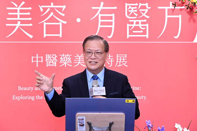 中國醫藥大學立夫中醫藥博物館舉辦中醫藥美容特展「藥美容.有醫方」4日上午開幕,江安世校長致詞感謝策展團隊的用心,此次特展的主題「美容」,正是中醫藥智慧中一個很重要、卻常被忽略的面向,它是一套生活哲學,教我們如何順應自然、調養身心,讓生命活得更健康、更有品質。