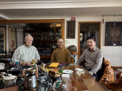 妙熙社長是由中華民國資深記者協會理事長賴連金博士陪同來會見洪社長,賴博士和妙熙社長同為世界華文作家協會重要成員,今天二人的到來,受到洪錫銘社長夫婦熱忱接待。