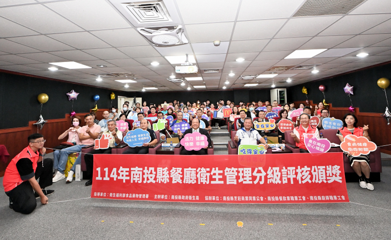 吃的安全,食在安心,南投縣政府衛生局今(10)日在衛生局舉辦 114年「餐飲業衛生管理分級評核」頒獎典禮,由副縣長王瑞德頒獎表揚59家通過評核的優質業者,除肯定業者對本縣餐飲衛生安全的努力及付出,也呼籲縣內業者一同為食安努力,提供遊客來觀光首都更好的美食體驗。