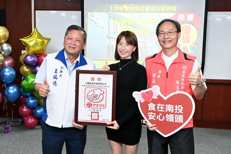 食在安心 安全~餐食選「優」「良」南投頒發餐飲衛生管理分級評核獎章
