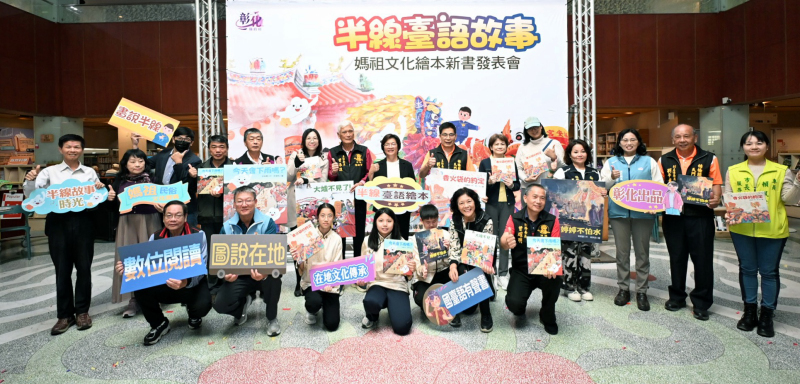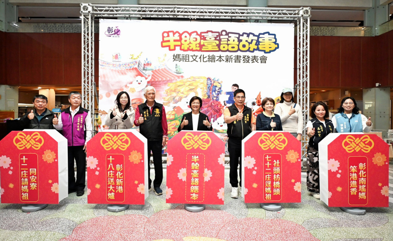 彰化縣文化局今(20)日在縣立圖書館辦理「半線臺語故事繪本新書發表記者會」,縣長王惠美、繪本作者、繪者及各宮廟主委等人與會。王縣長表示,為讓大眾更認識彰化的「媽祖故事」,特別邀請在地作家與著名插畫家共同創作,以彰化縣無形文化資產的媽祖民俗文化慶典為主題,出版4本精彩繪本。
