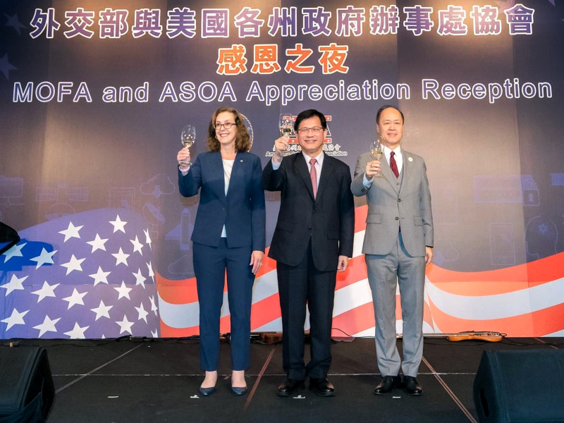 外交部長林佳龍出席由外交部與美國各州政府辦事處協會(ASOA)共同主辦的感恩之夜酒會,致詞時感謝ASOA長期以來與外交部密切合作,共同推動台灣與美國在經貿、投資、教育、文化及觀光等領域的交流。