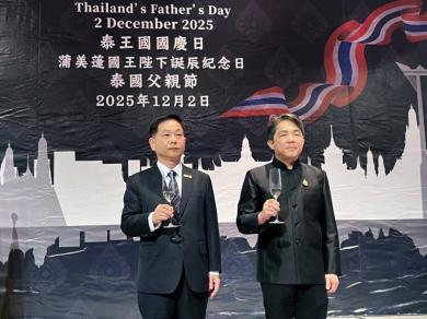 外交部常務次長葛葆萱於今(2025)年12月2日晚間,代表外交部長林佳龍應邀出席「泰國貿易經濟辦事處」(Thailand Trade and Economic Office)舉辦的「2025年泰王國國慶日、蒲美蓬國王陛下誕辰紀念日及泰國父親節酒會」。勞動部長洪申翰、教育部政務次長劉國偉、僑務委員會副委員長李妍慧、退輔會副主任委員傅正誠,以及多位立法委員與各界代表都應邀出席。