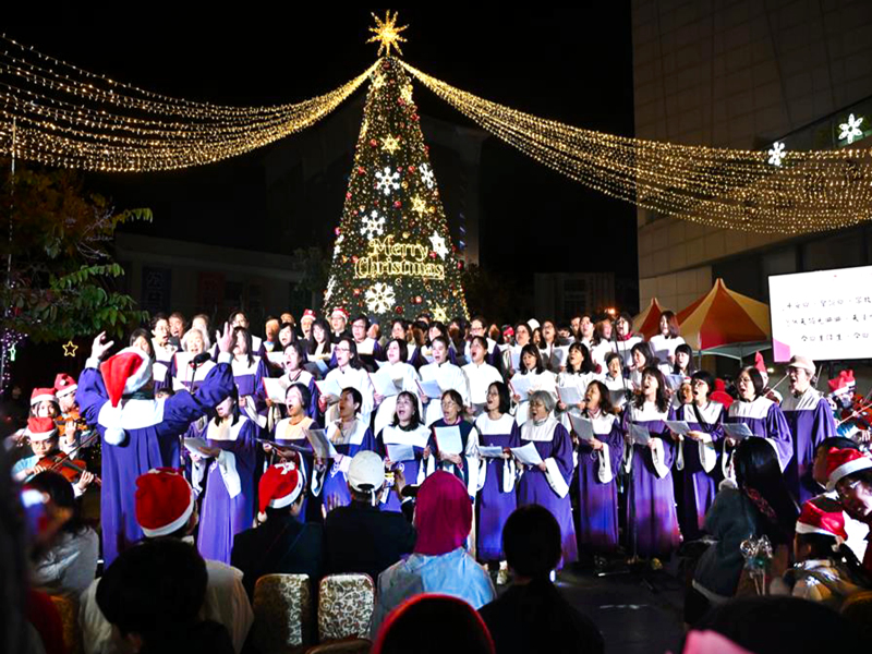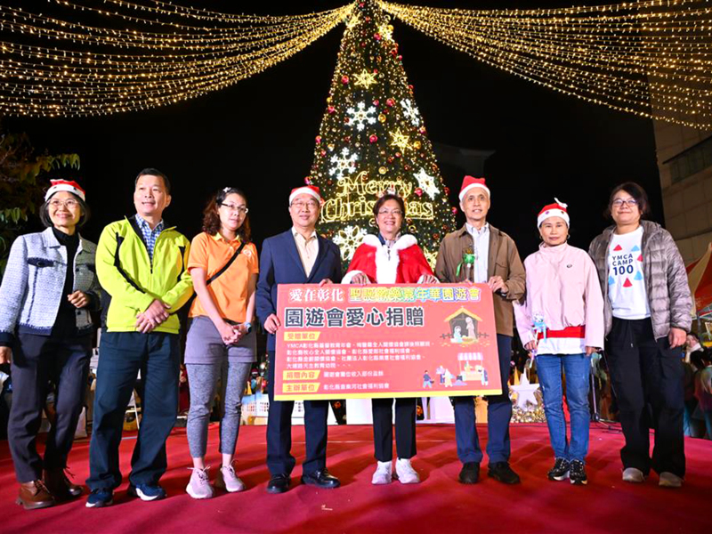 為迎接聖誕佳節,彰化縣政府於縣立美術館前廣場打造10公尺高的夢幻聖誕樹,攜手彰化縣音樂河社會福利協會,舉辦「2025愛在彰化聖誕嘉年華園遊會暨點燈活動」,由縣長王惠美、彰化縣音樂河社會福利協會創辦人阮慧玲等人共同點亮聖誕樹。王縣長表示,聖誕樹主燈將自即日起展出至明(115)年3月1日,主燈高達10公尺,每日亮燈時間為17時30分至22時。緊接著「月影燈季」將於12月27日登場,為迎接馬年的到來,特別把八卦山大佛風景區打造成可愛歡樂的「跳跳馬戲團」,同樣展出至明年3月1日,歡迎民眾蒞臨觀賞。