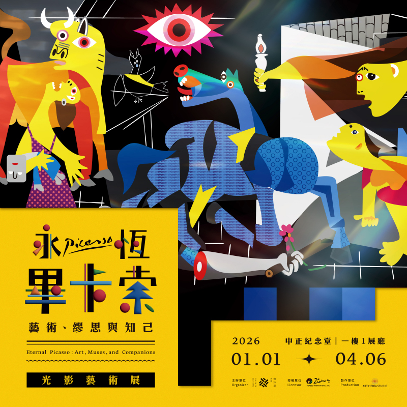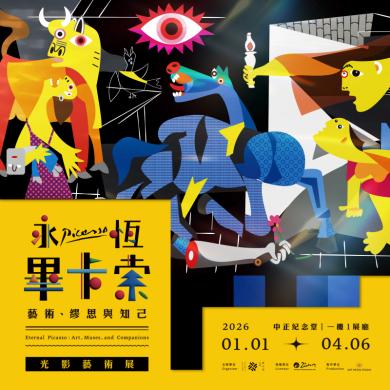 由翡冷翠文創股份有限公司主辦的《永恆畢卡索:光影藝術展──藝術、繆思與知己》特展,2026 年 1 月 1 日起在中正紀念堂1展廳盛大開展,展期至 4 月 6 日,透過光影藝術,帶領觀眾讀懂畢卡索創作魅力。