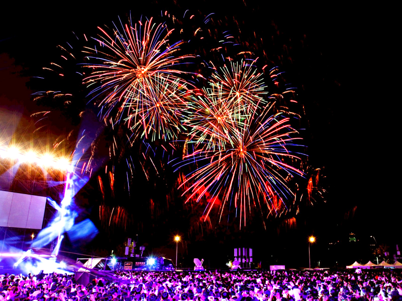 今晚跨年活動19時正式開始,由告五人震撼開場、盧廣仲暖歌連發、倒數前邀請金曲歌王蕭敬騰獨家開唱長達30分鐘,倒數後由天團動力火車接續嗨唱經典歌曲,讓台下歌迷聽得如癡如醉,跟著音樂搖擺唱跳,從傍晚一路High到凌晨。
