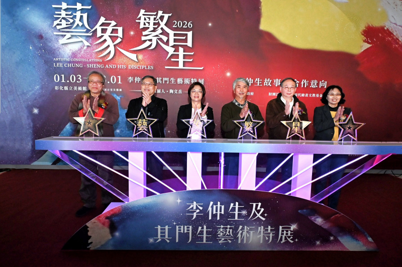 「藝象繁星-李仲生及其門生藝術特展」即日起至今(115)年3月1日在縣立美術館盛大展出。今(6)日上午舉行開幕記者會,彰化縣長王惠美、國立臺灣美術館汪佳政副館長、財團法人李仲生現代繪畫文教基金會董事長黃步青、策展人陶文岳教授、參展藝術家等人與會。王縣長表示,本展覽除展出已逝藝術家李仲生油畫、水彩、素描與珍稀手稿等共42件作品外,更邀請47位門生每人提供1件作品參展,全展共計89件作品,呈現李氏藝術在不同時期的演化,更於展場重現「一對一咖啡館教學」情境,使民眾得以貼近李仲生與弟子互動的精神風貌。