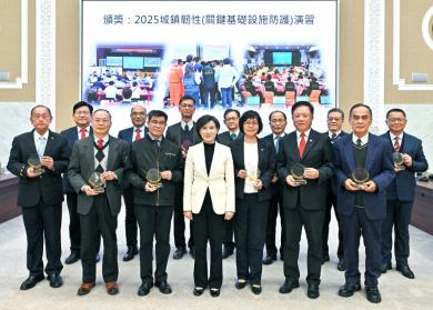 鄭副院長於會前首先頒獎表揚2025城鎮韌性(關鍵基礎設施防護)演習獎勵單位及個人,並於致詞時表示,感謝所有獲獎單位及個人之負重前行,才能讓國人歲月靜好,同時也感謝各主管機關的支持與協助,過去一年在大家努力下,有許多精進。她指出,2025年度計有35處CI配合「2025城鎮韌性演習」,與11個參演縣市共同執行,非常辛苦地進行相關作業規劃及演練,她要代表卓榮泰院長再次向大家致謝。