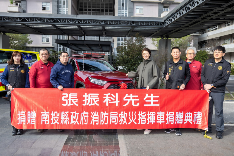 南投縣長許淑華表示,南投縣幅員廣大,地形多元且山區道路崎嶇,對於緊急救護及災害搶救是重大考驗,感謝「七里香甕仔雞」董事長林宜臻與總經理巫柏儒捐贈被譽為「救命先鋒」的救護車,讓專業醫療裝備能順暢地穿梭於巷弄與山區,在第一時間抵達傷病患身邊;以及張振科慷慨捐贈救災指揮車,指揮車不僅是災害現場指揮調度的成敗關鍵,更是前線的「移動辦公室」,能協助指揮官即時掌握災情並進行精準人車派遣,對於提升救災效率與保障執勤同仁安全具備實質意義。此次受贈車輛將分配到日月潭分隊,讓到南投旅遊的民眾能得到更安全的保障。