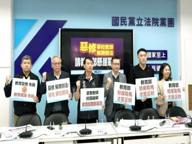 教育部1月12日修正《高級中等以下學校教師解聘不續聘停聘或資遣辦法》及《公立高級中等以下學校教師成績考核辦法》,並於1月14日正式上路。本次修法重點在於刪除匿名檢舉、新增輔佐人參與制度與程序保障。為此,國民黨團今(20)上午邀集全國教師工會聯合總會共同召開記者會,呼籲教育部懸崖勒馬,修法後更突顯教育官僚失職,造成教育現場失能,最後造成師生關係和校園環境嚴重失序。