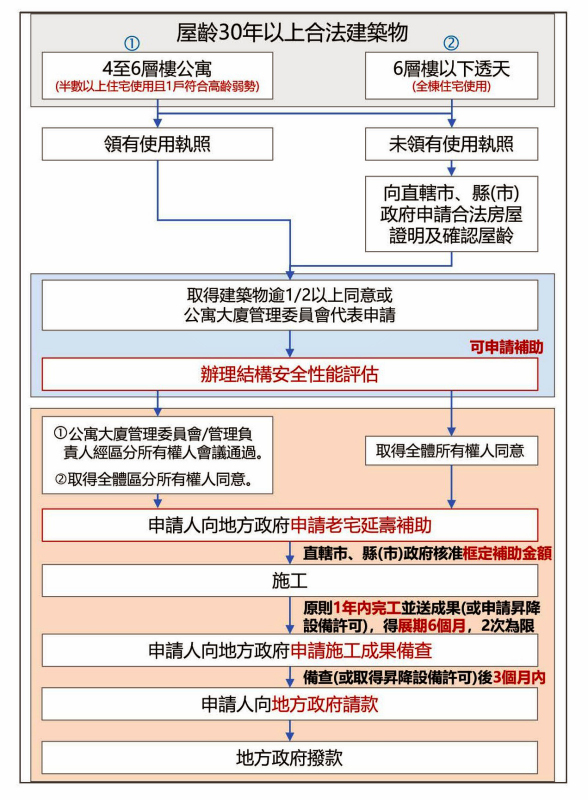 內政部補充,針對結構安全性能初步或詳細評估所需費用,內政部也有提供補助,減輕申請人負擔。此外,民眾常關心的頂樓加蓋、前後陽台外推及鐵皮加建等增建部分,內政部強調,都不是計畫的補助範圍;不過,公寓住戶如果於申請老宅延壽修繕補助時,自願進行老舊招牌、違規物或違建拆除,其相關拆除工程費用也可適用本專案補助。
