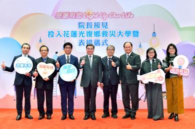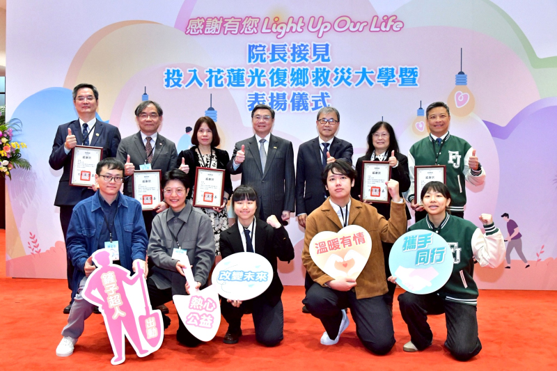 行政院長卓榮泰(26)日接見投入花蓮光復鄉救災大學暨表揚儀式「感謝有您·Light Up Our Life」。院長感謝去(114)年9月全臺30所大學師生化身「鏟子超人」,投入馬太鞍溪堰塞湖災後復原,也肯定季連成政務委員於災後駐點花蓮24天,協助整合資源,使50萬人次師生與志工得以順利進入災區投入重建。卓院長並向長期支持教育的5家民間基金會致敬,強調投資年輕人就是投資國家的未來;投資下一代,就是投資國家未來的希望。未來政府將持續在協助青年的政策上努力,讓這50萬人次「鏟子超人」化為希望種子,在花蓮生根、走向全世界,政府為青年鋪路,青年為臺灣加油。