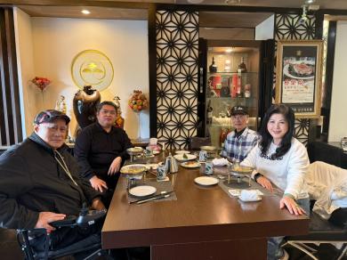 今天共有3+1位同行,包括世紀新聞社長洪錫銘、社務顧問崔長風、台中市新聞工會理事長畫家廖庭玉、世紀新聞總編廖繼銘等人,除了享受豐盛和風料理,大快朵頤,並提前互祝「金馬奔騰、馬上發財」。