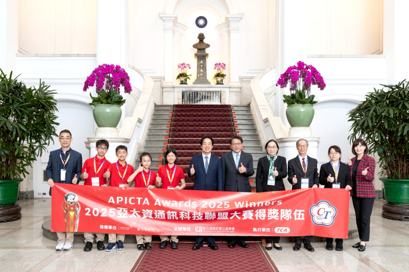 賴清德總統(2)日上午接見亞太資通訊科技聯盟大賽APICTA Awards 2025獲獎代表隊時表示,臺灣於去年賽事勇奪10金、8銀、6銅,成績亮眼並刷新大會紀錄,展現我國資通訊研發與創新實力;政府將持續作為堅實後盾,期盼未來與各界攜手,為臺灣及印太區域打造更智慧、美好且具包容性的數位未來。