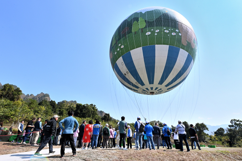 南投氦氣球未昇空,搶先轟動!縣府於11日上午在九九峰舉辦九九峰氦氣球樂園工程啟用典禮暨試營運活動,位於草屯鎮平林里的氦氣球園區,引進法國Aerophile頂級氦氣球,讓遊客可以在穩定、安全的條件下,輕鬆升空。