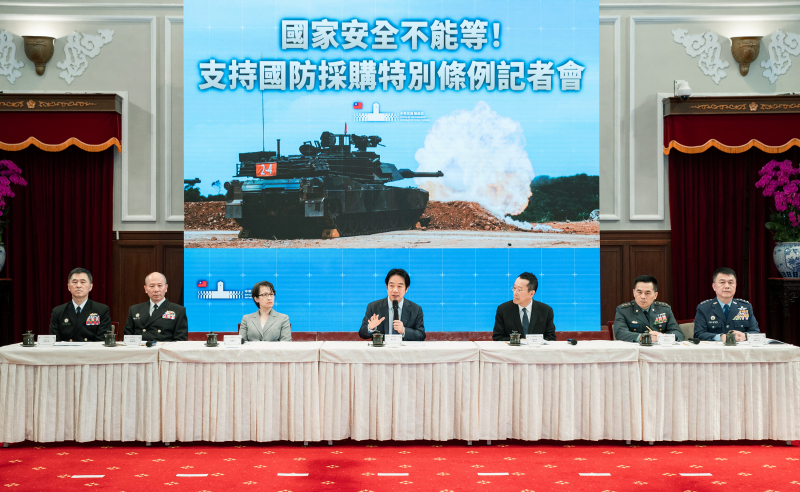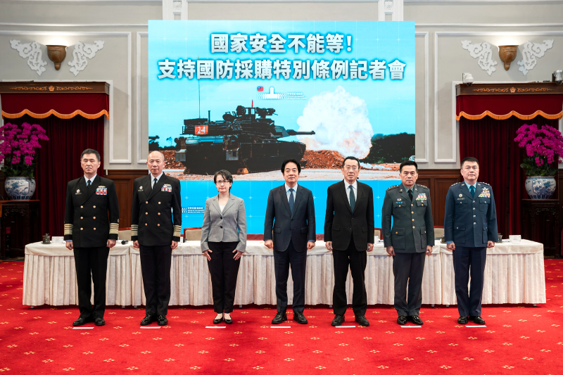 針對行政院提出「國防特別預算條例」草案迄今在立法院未能付委審查,賴清德總統今(11)日上午特別召開「國家安全不能等!支持國防採購特別條例」記者會,向國人說明政府對國軍待遇的重視,以及國防特別預算的重要性。