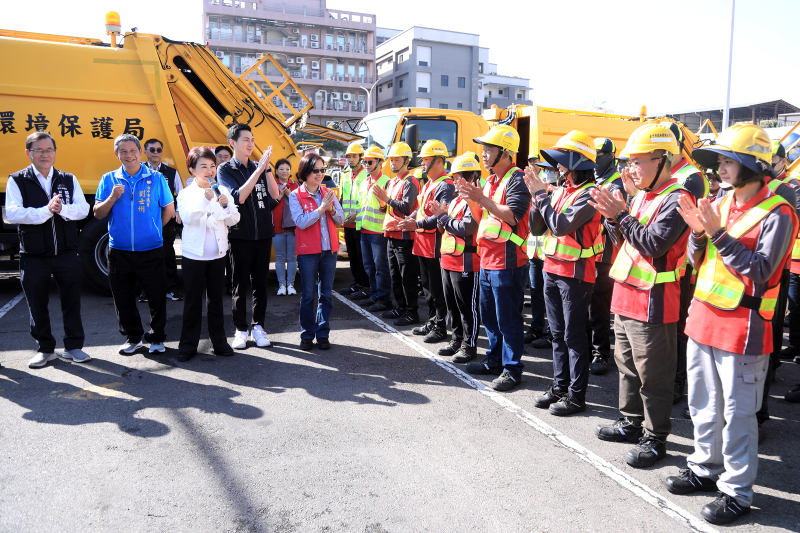 盧市長表示,清潔隊的同仁是最辛苦的一群,他們幾乎全年無休,為我們的市民服務,整理台中市的市容景觀,尤其年節家家戶戶大掃除、過年期間大家歡聚團聚,垃圾也會特別多,清潔隊員的工作比平常更繁重許多,所以她今天專程來感謝。