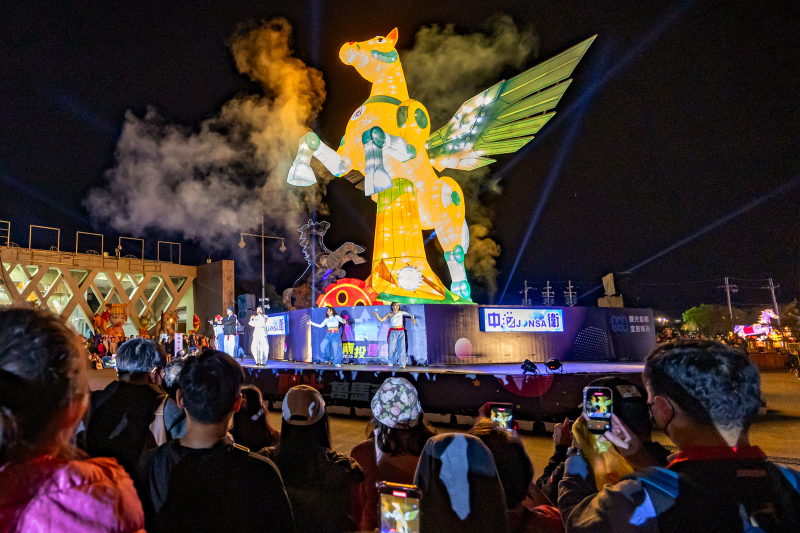開幕之夜邀請戴愛玲、安心亞、姑慕巴紹等超人氣歌手接力開唱,搭配震撼水舞秀與璀璨煙火表演,將現場氣氛推向高潮。民眾排隊領取縣長親發的「天馬行空」小提燈及小紅包,互動熱絡,年味十足。