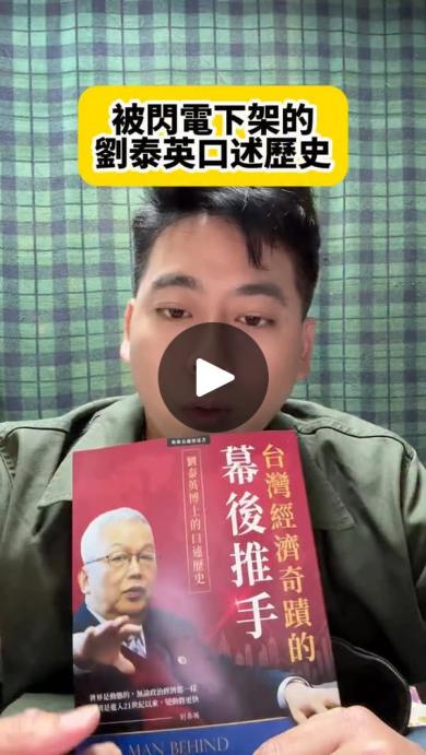 因為前總統、一位賤價買進中華開發的辜家及爆發戶余X寶,都派人來向我及劉泰英施壓,劉泰英90歲了,還被迫不能講真話嗎?他被前政權羅織罪名,在72歲時被關了三年,連老婆死了都不能去送葬。請聽他在這本口述歷史裡講真話。