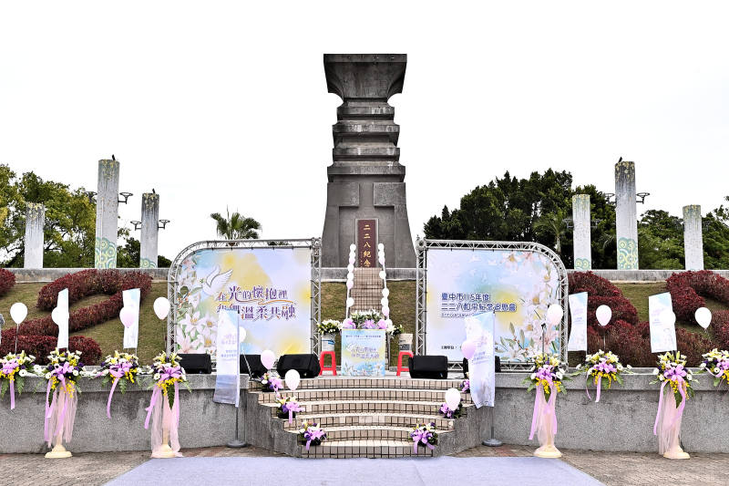 二二八事件屆滿79週年,台中市政府今(28)日在東區東峰公園二二八紀念碑前舉行和平紀念追思會,市長盧秀燕帶領民眾默哀致意,並在紀念碑前獻上鮮白百合,向受難者英靈表達追思與敬意。