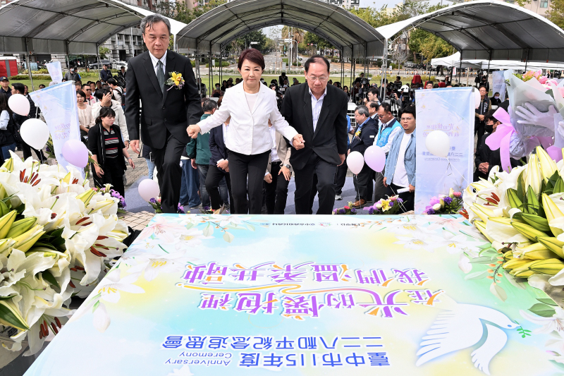 台ˋ中市長盧秀燕致詞表示,市府年年舉辦追思會,她任內每年都親自出席,今年是第8年出席,追思會不僅緬懷罹難者,更盼社會銘記歷史教訓,以愛化解仇恨、以理解撫平傷痛,讓記憶成為前行力量,促進國家安定與社會和諧。