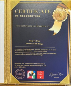 展覽期間,法國公立高等藝術學院 École Supérieure d’Art Dunkerque–Tourcoing 校長親自觀賞作品後,對其藝術表現給予高度讚賞,不僅頒發獎項與證書予以肯定,並收藏該件作品,表示將於其辦公室展示,供藝術學院師生觀摩與交流。此項肯定亦象徵台灣膠彩藝術在國際藝術教育領域受到專業肯定。