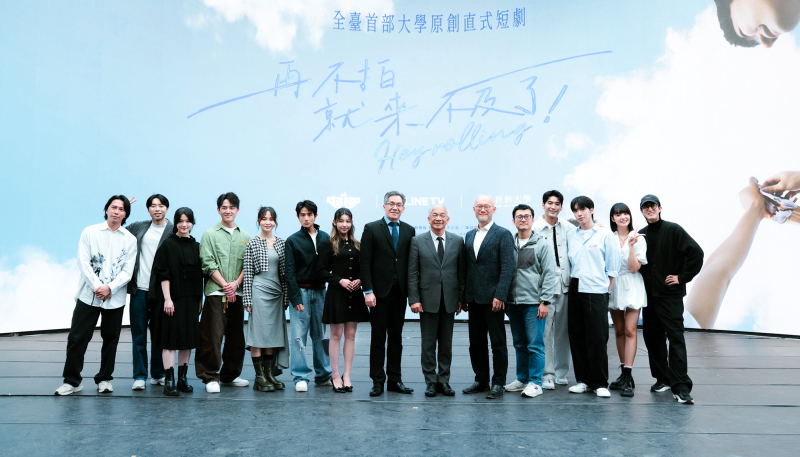 滑手機追短影音已成日常,世新大學師生實戰拍出的直式劇今晚將登上串流影音平台LINE TV。世新大學與LINE TV、好咖文創合作推出的原創直式劇《再不拍就來不及了!》,今天(3/4)在校內舉行上檔記者會,並與LINE TV簽署產學合作備忘錄,宣布共同打造「微短劇人才培訓基地」。卡司集結社群與戲劇雙棲的新世代人氣創作者,並由世新知名校友演員涂善存擔綱男主角,並於今晚6點在LINE TV及YouTube頻道正式首播。