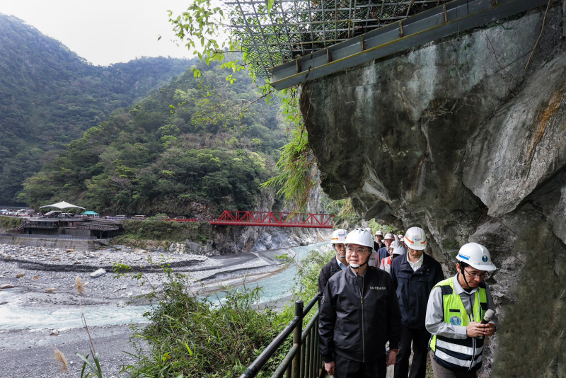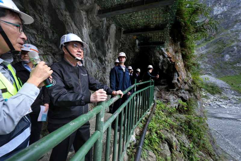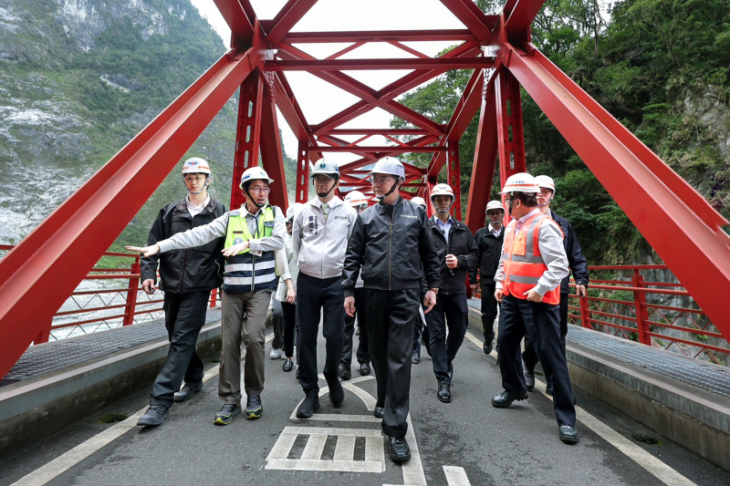 地震將於下個月屆滿2年,希望能以最快速度修復長春祠,而這2年間又陸續遭逢凱米、山陀兒、康芮等多個颱風侵襲,加以複合性災害反覆發生,使整個修復工程面臨更大困難與挑戰,感謝工程團隊辛勞付出,讓道路得以逐段修復,尤其在太魯閣國家公園內,台8線中橫公路東段沿線有多處災情發生,其中天祥至太魯閣閣口間約17公里路段最為嚴重,因此當時交通部迅速整合地方需求,提出整體修復計畫,行政院亦即時核定,儘速展開沿線危險邊坡搶修及4處明隧道新建等庇護工程,部分邊坡復建工程並已超前進度完成。