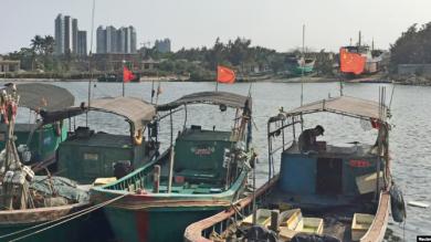 中國廈門潭門港,懸掛中國國旗的漁船(資料照片)