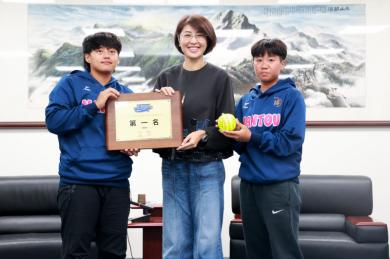 許縣長表示,114年度大專院校女子壘球聯賽,暨大女壘不僅成功擊敗包括臺灣體育運動大學等強勁對手,也將冠軍獎盃繼續留在南投,創下六連霸成績,同時取得挑戰亞洲盃門票真的非常不容易。