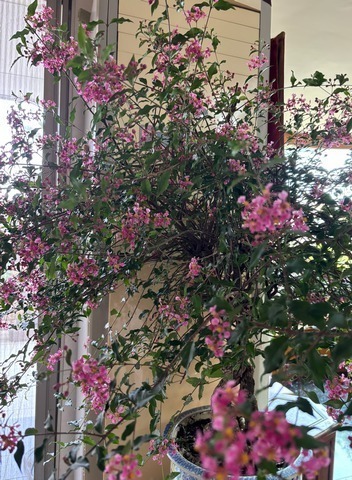 這棵20多年前曾是小小矮矮盆栽,記得是50元買來,置放在洪園小庭園,除偶爾施水,也給予普普通通小顆粒肥料,它因生命力特強,長年以來都會開花,近幾年綻放花朵特繁茂,實在數不清。