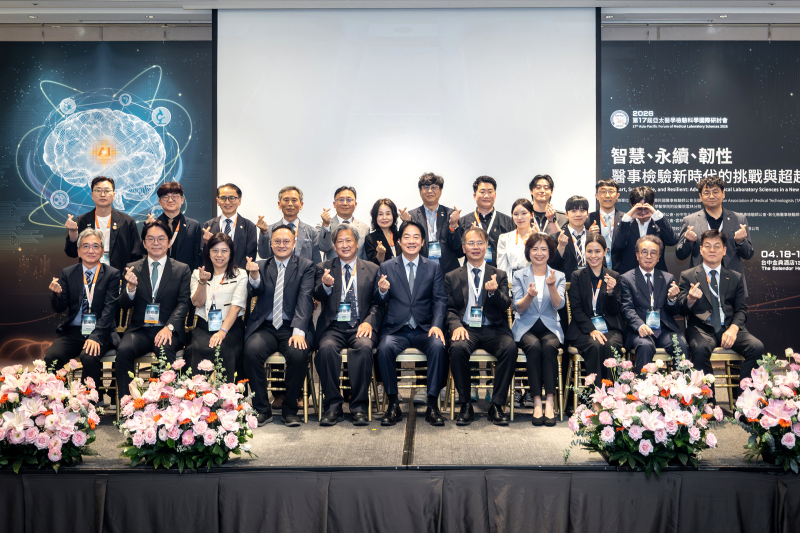 賴清德總統前往臺中出席「2026第17屆亞太醫學檢驗科學國際研討會」開幕式時表示,醫學檢驗就像醫療體系的「眼睛」,不只是診斷流程的一環,更是精準醫療、公共衛生、感染管制及醫療體系的重要支柱。尤其,臺灣面臨超高齡社會、慢性病增加及極端氣候等多重挑戰,政府將透過擴大醫療投資、導入智慧科技,朝「健康臺灣」的目標邁進,期盼進一步提升醫療服務品質,帶動生醫產業持續創新發展,共同守護人民的健康。