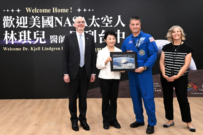 美國首位台裔 NASA 太空人 林琪兒 (Dr. Kjell N. Lindgren) 於 ( 23 )日 回到出生地台中展開參訪行程,由台中市長盧秀燕、 AIT 處長谷立言陪同前往 美村綜合服務園區(原美軍聯勤招待所),並由台中市長盧秀燕親自接待。