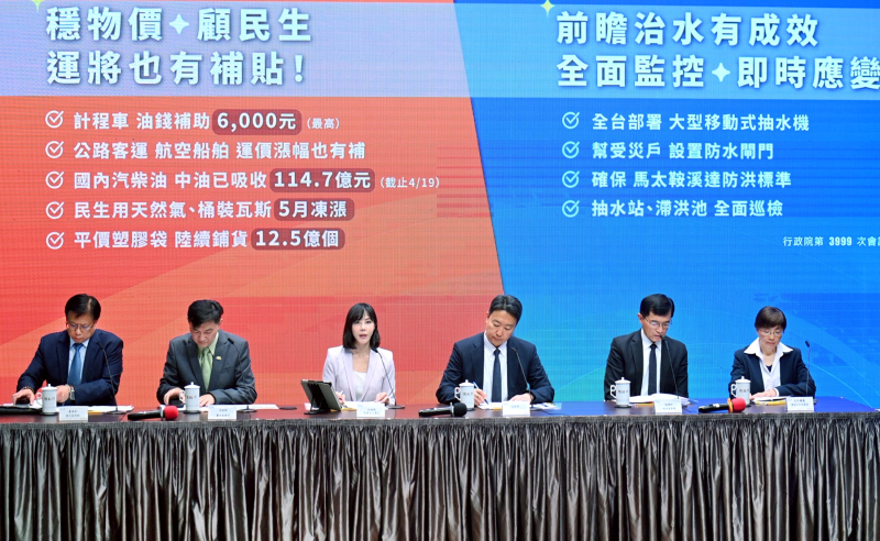卓院長指出,目前國內石油仍維持安全存量,天然氣至6月也調度無虞,政府持續推動專案平穩機制,維持油價為亞鄰最低價;截至上週,中油公司預估已吸收114.7億元。同時,今日院會決定採取三項新措施,持續減輕產業負擔,照顧民生需求。