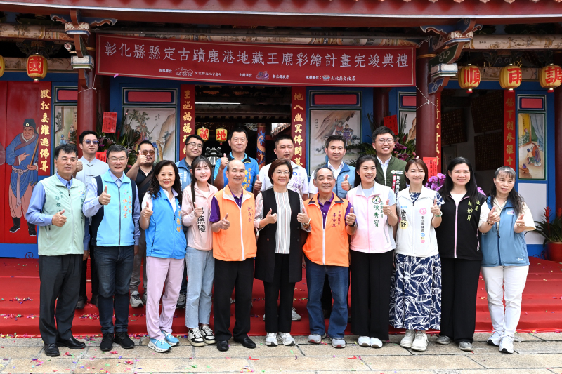 為保存珍貴文化資產並彰顯傳統工藝之美,彰化縣政府於今(28)日上午在鹿港地藏王廟舉辦彩繪計畫完竣典禮,彰化縣長王惠美、鹿港地藏王廟主委許森樹與各級民代等人與會、共同見證古廟歷經歲月淬鍊,再現風華的嶄新面貌。