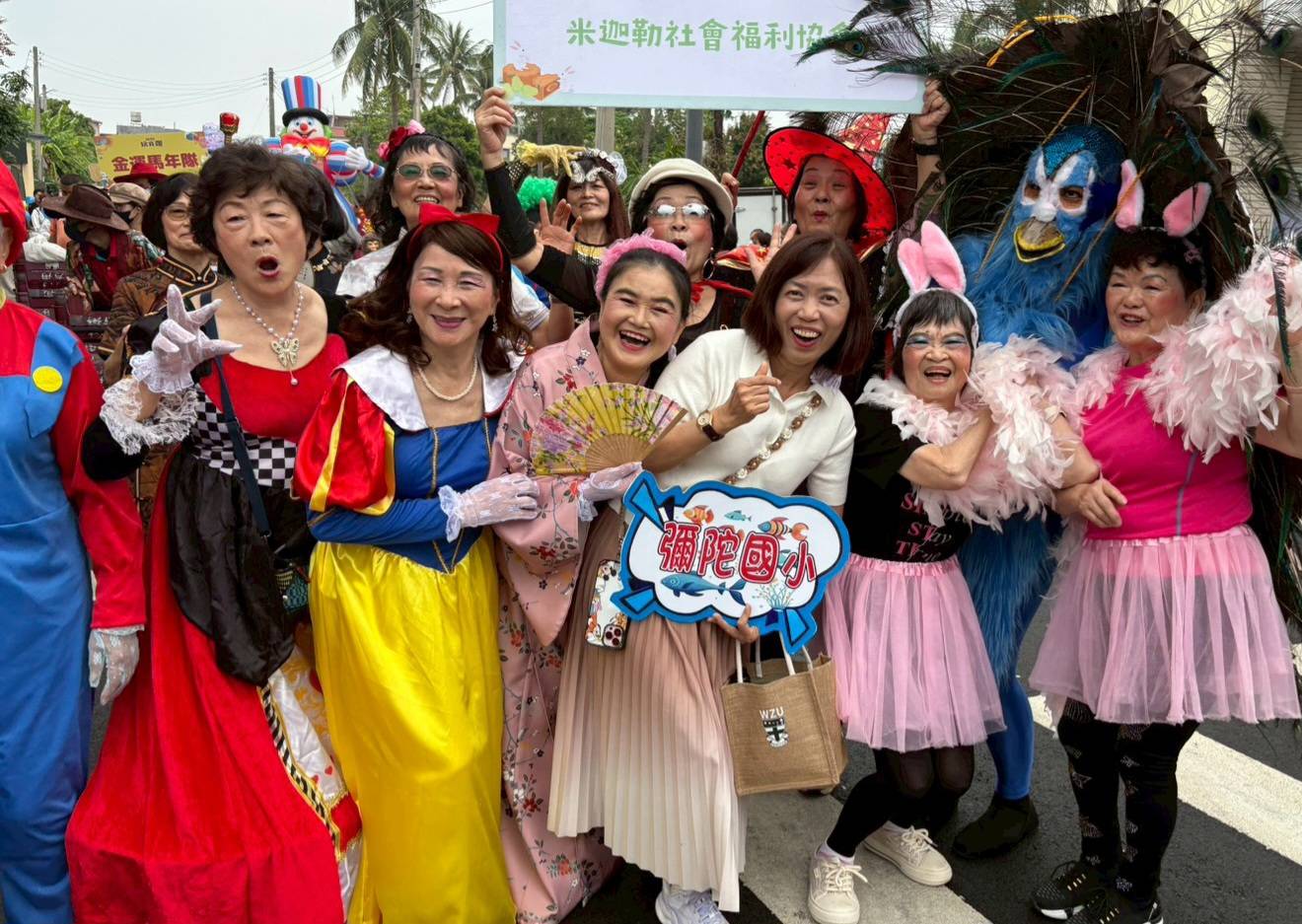 彌陀一年一度的元宵嘉年華活動——「玩宵彌」,在熱鬧與感動中盛大登場。其中最令人期待的,莫過於變裝踩街遊行。隊伍自彌陀國小出發,一路走向海尾朝天宮,短短15分鐘的路程,卻因滿滿的人情味與歡笑聲,走成了一個小時的溫暖旅程。