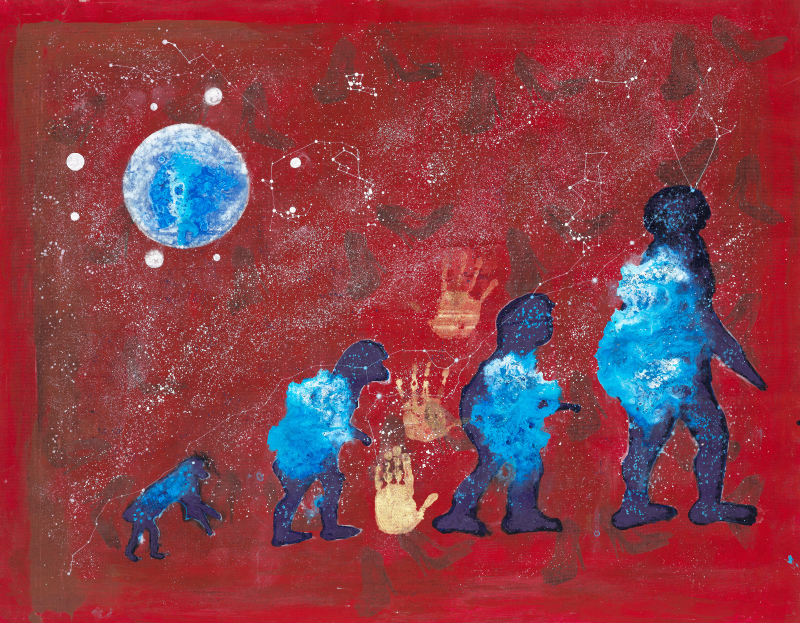 包含〈晝與夜〉是在表達時間的移動,和空間的相互關係;〈伏羲先天八卦〉方位均按各卦的坐落,如乾南、坤北、離東、坎西、兌東南、艮西北、巽西南、震東北並結合星座展開;〈文王後天八卦〉金、木、水、火、土五行,依方位排列;〈阿凡達-外星人〉人類的科技,至今仍然存在著想像的階段,圖面上的阿凡達,有創作者的想像和觀賞者的自我認知;〈星象系列〉在八卦五行的圖面上,均依星象方位組合呈現。展出的內容,不論是表現時間的移動(晝與夜)、空間的運用(浩瀚宇宙)、先人的智慧(易經)、現代的科技(阿凡達)等等,都傳達出人類科技和浩瀚宇宙息息相關以及不可分割的命運。