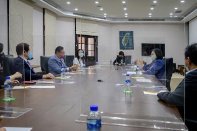 蔡英文於6月18日在總統府接見郭台銘、劉宥彤、台積電董事長劉德音等人,就向德國BNT原廠洽購疫苗的相關計畫交換意見。