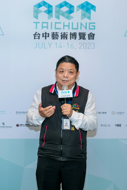 臺中市政府文化局施純福副局長致詞時表示,台中藝術博覽會今年邁向第11屆,從金典酒店到日月千禧酒店,再到林酒店,每一年都是盛況空前,尤其去年還破萬人參觀,今年則是參展的畫廊數打破紀錄,更可以看見藝術博覽會推廣藝術產業的成果。林酒店的周邊有臺中國家歌劇院、秋紅谷景觀生態公園,都市的美學風格相信可以持續吸引展商參展,也讓更多藝術愛好者來台中參觀藝術博覽會。