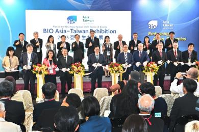行政院副院長鄭文燦(27)日出席「2023 BIO Asia-Taiwan亞洲生技大展開幕式」時表示,此次大展共吸引超過800家參展商、2,000多個攤位,是臺灣鏈結國際的前3大生技展覽。