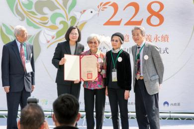 面對過去,我們不能忘記,更不用害怕想起來;面對未來,我們要持續深化對話,追求民主永續的社會共同體。謝謝大家。隨後,總統頒發「回復名譽證書」予受難者家屬吳真希、杜春源、江榮森及何黎蘭。